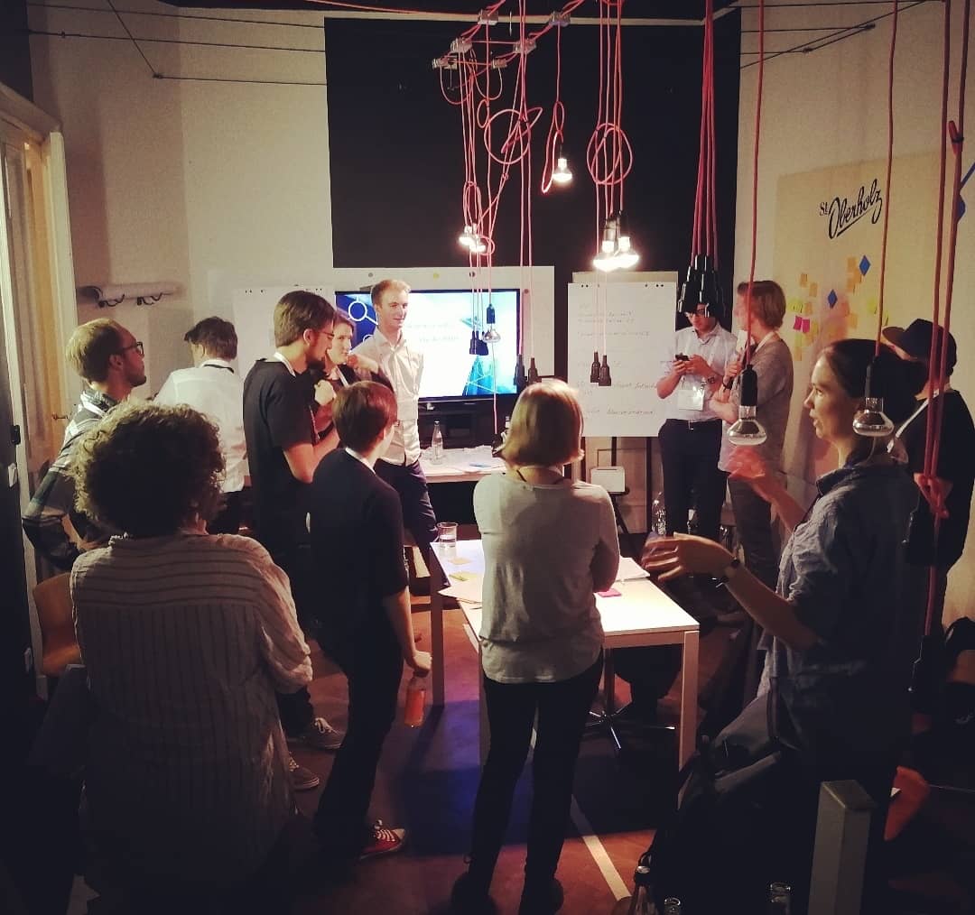 Die Architektur des Raumes am Samstag ist vergleichbar mit unseren Gedanken: Überall erschließen sich neue Ecken und Giebel. Durch eine Wendeltreppe können wir auf eine neue Ebene gelangen. Was im ersten Moment abgedroschen klingt, entspricht dem tatsächlichen Geschehen. Denn: Wir haben einerseits verstanden, wie die aktuelle Situation aussieht und was es „auf dem Markt“ bereits gibt und andererseits erstellen wir direkt eine gemeinsame Agenda, die unsere Arbeit für die nächsten Monate bestimmen wird.