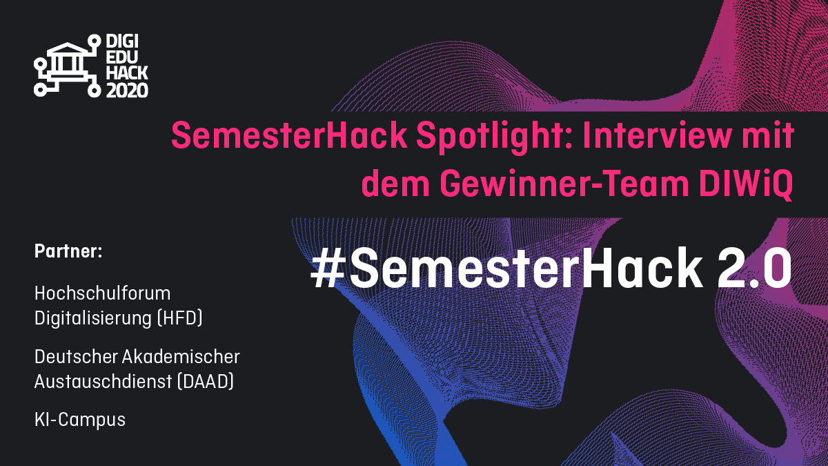 Die #SemesterHack 2.0 Gewinner-Projekte laufen auf Hochtouren. In der Serie „SemesterHack Spotlight“ besuchen wir die Gewinnerteams, die uns einen Blick hinter die Kulissen gewähren. Im folgenden Beitrag führt Kai-Uwe Hunsicker ein Interview mit dem Team „DIWiQ.“