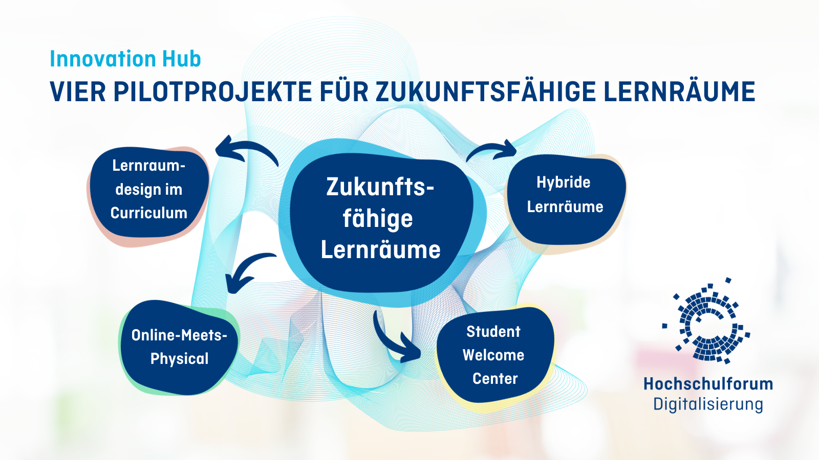 Der digitale Wandel beeinflusst auch die physische Lernraumgestaltung an Hochschulen. Kompetenzorientierte Lehr-/Lernformate benötigen neue und vielfältige Lernumgebungen. So verändern sich traditionelle Hörsäle zu multifunktionalen Lernflächen, werden mit digitaler Technik für Hybrid-Szenarien ausgestattet und um kreative Raumkonzepte wie Makerspaces ergänzt. Im Zentrum der Um- und Neugestaltung von Raumstrukturen steht die Vermittlung von Zukunftskompetenzen. Seit 2018 beschäftigt sich das Hochschulforum Digitalisierung mit dem Thema zukunftsfähiger Lernräume in verschiedenen Expert:innen-und Arbeitskreisen. Seit 2021 bündelt das HFD seine Aktivitäten dazu im Innovation Hub Zukunftsfähige Lernräume.